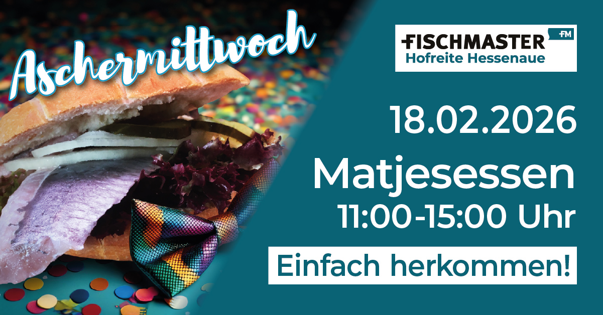 Matjes-Essen am Aschermittwoch – Einfach vorbeikommen & genießen! 📍 Fischmaster Lappland-Zelt | 🗓 18. Februar 2026 | ⏰ 11:00 – 15:00 Uhr könnt Ihr bei uns im Winterwald (in der Zanderstube) oder im Lappland-Zelt frischen Matjes essen, mit Quellkartoffeln und unserer beliebten hausgemachten Sahnesauce!